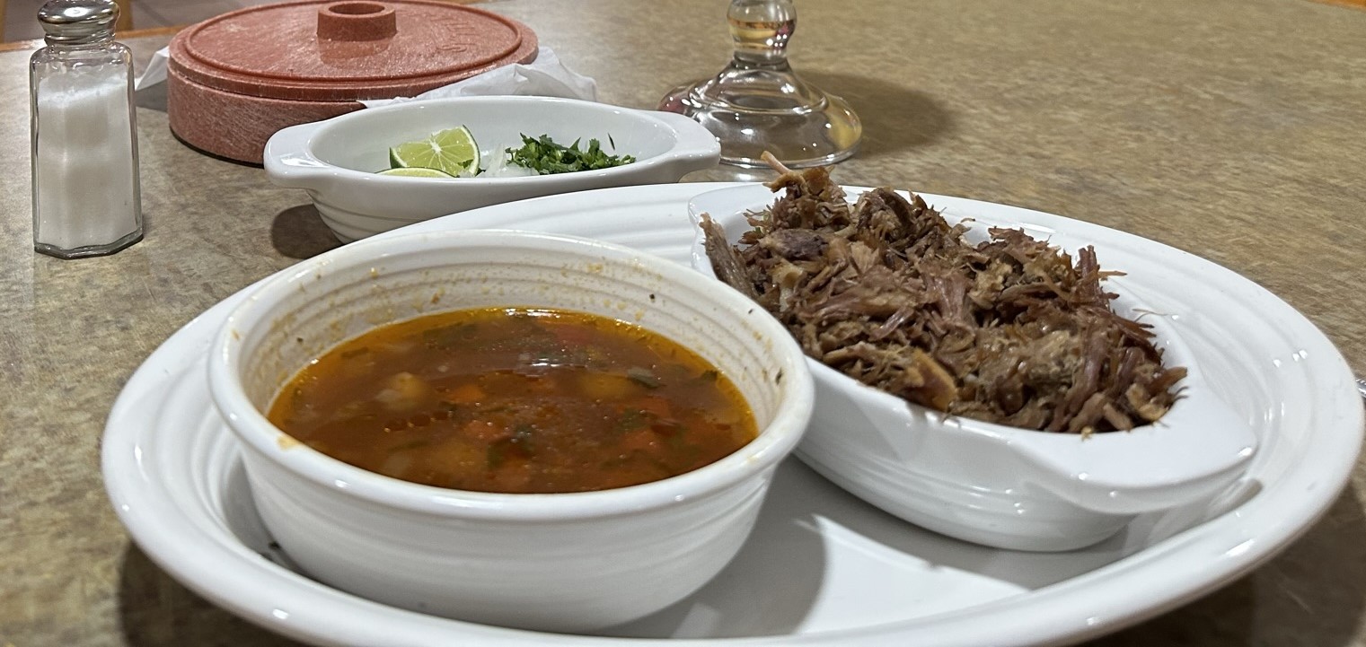 Chile Colorado : A classic of many Mexican homes, this dish is prepared with thinly cut beef filet sautéed in a flavorful red light tomato sauce, accompanied with Mexican rice and refried beans. |