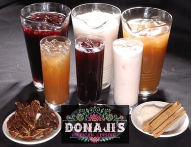 Tacos Baja : A Donaji’s classic dish made with three lightly breaded tilapia tacos, topped with Pico-de- Gallo, shredded cabbage, pickled onions, diced cucumber, and sour cream. |